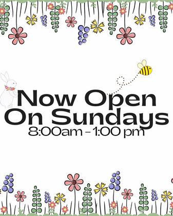 OPEN ON SUNDAY THIS SEASON 8:00 AM-1:00 PM